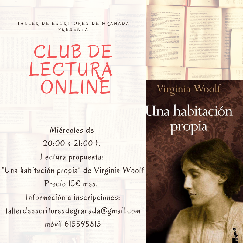 El club de lectura de Taller de Escritores de Granada presenta el nuevo libro a tratar: “Una habitación propia” de Virginia Woolf. Las sesiones de comentario, charla y disfrute del libro las realizaremos cada miércoles a las 20:00 horas a través de la aplicación ZOOM.